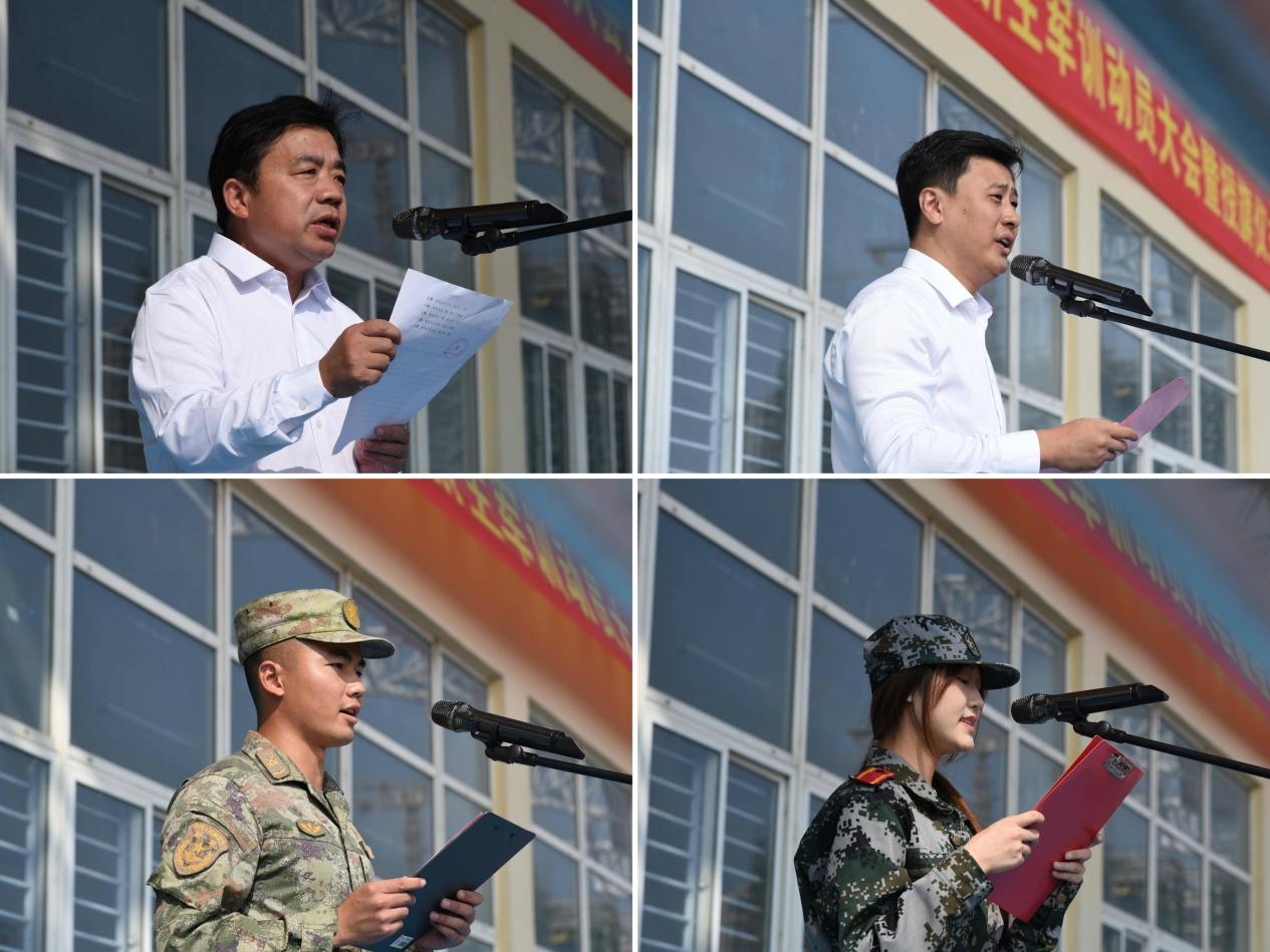 军训旅旅长强承魁作军训动员讲话。他首先代表学校对全体新同学表示热烈欢迎,向长期以来关心支持我校军训工作的承训部队官兵致以衷心感谢。他指出,军训作为国防教育第一课,是我校大学生思想政治教育工作的“永久”牌。他希望全体参训同学:一是要忠于祖国,传承奋斗之志,让血气方刚成为战胜未来一切艰难险阻的不竭动力,坚决让敢打敢拼成为大学生涯的最强音;二是要磨炼意志,凝聚集体之力,把“流血流汗不流泪”的意志磨砺和“掉皮掉肉不掉队”的集体凝聚,融入血液、铸入灵魂、 化为行动;三是要瞻远行实,践行青春之为,发挥青年人特有的朝气和激情,立志在祖国和人民最需要的地方追逐梦想、施展抱负、建功立业。
